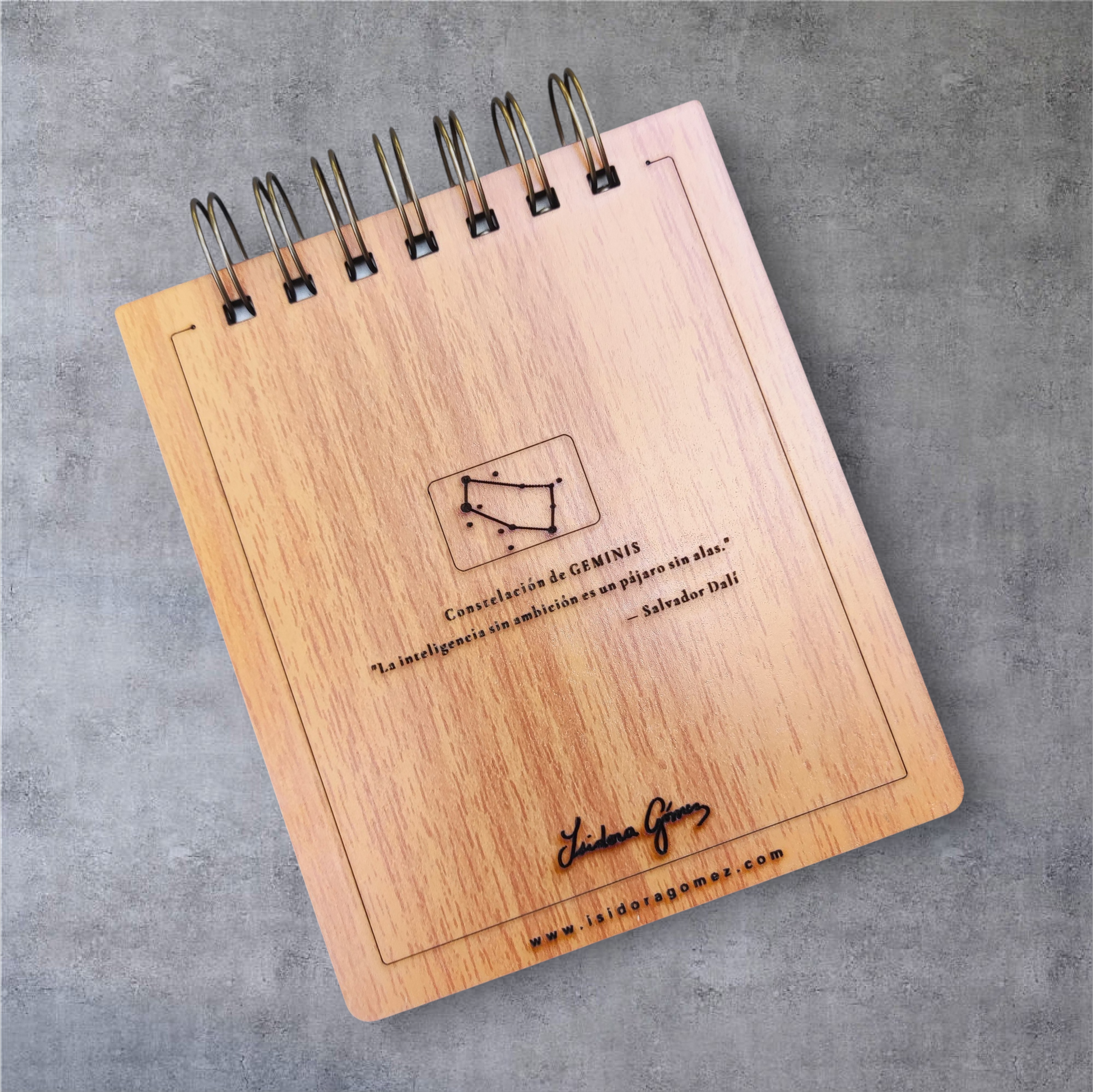 The Gemini Notebook celebrates your versatile and communicative mind with a cover inspired by the sign and, on the back, the Gemini constellation to accompany every brilliant idea. Made from soft, eco- friendly sugarcane paper , it's perfect for quick notes, dual ideas, and plans that change course with your creativity.