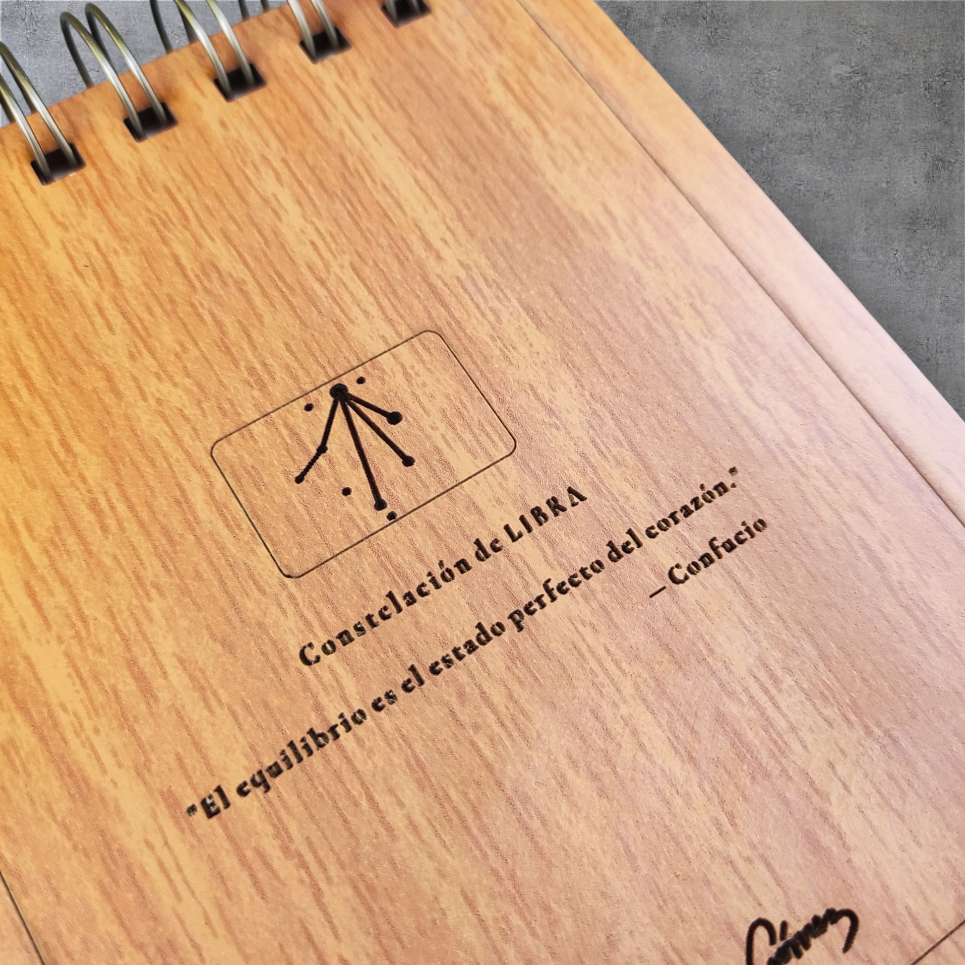 The Libra Notebook celebrates your quest for harmony and beauty with a cover inspired by the zodiac sign and, on the back, the Libra constellation to remind you of balance on every page. Made from soft, eco-friendly sugarcane paper, it's ideal for stylish notes, creative ideas, and plans that flow smoothly.