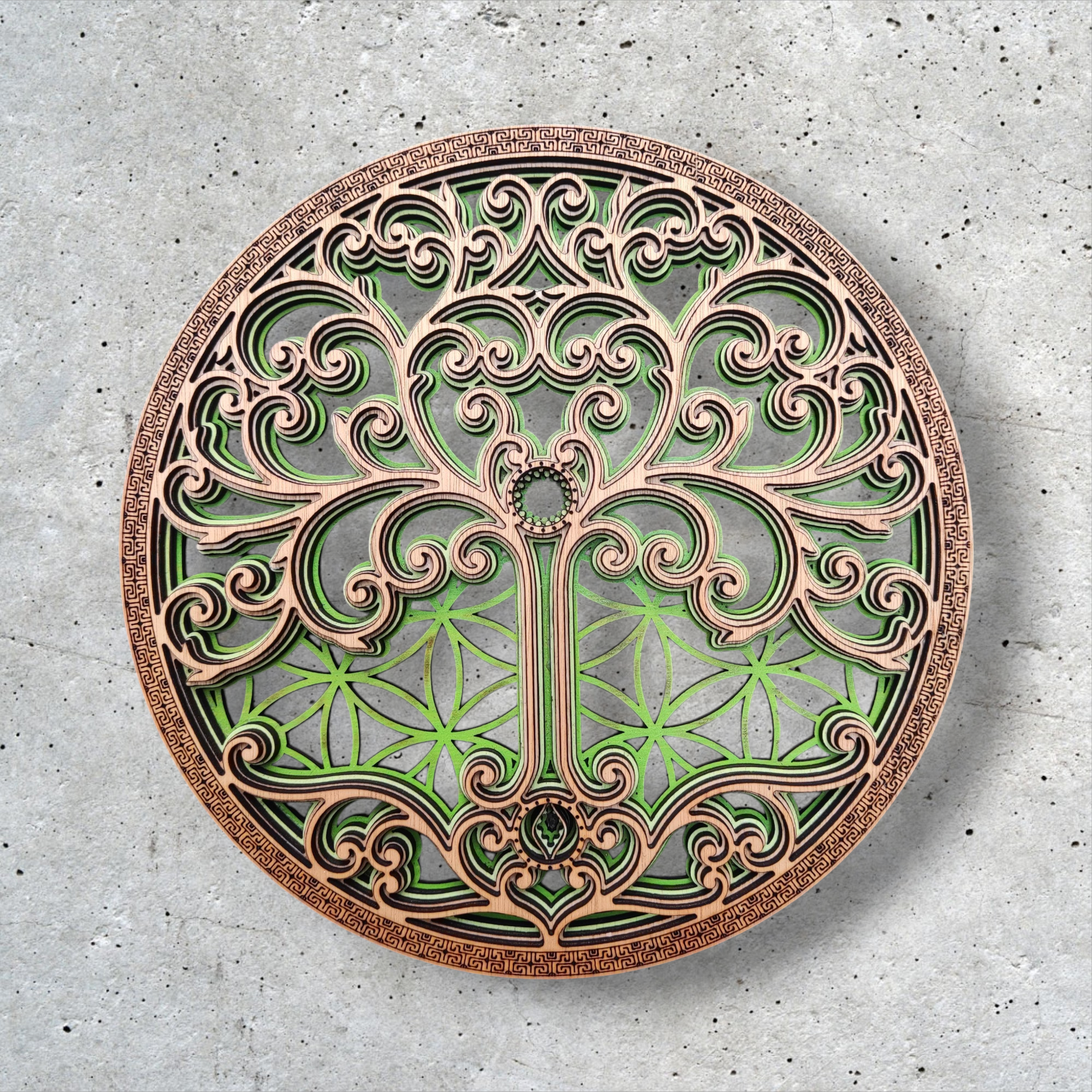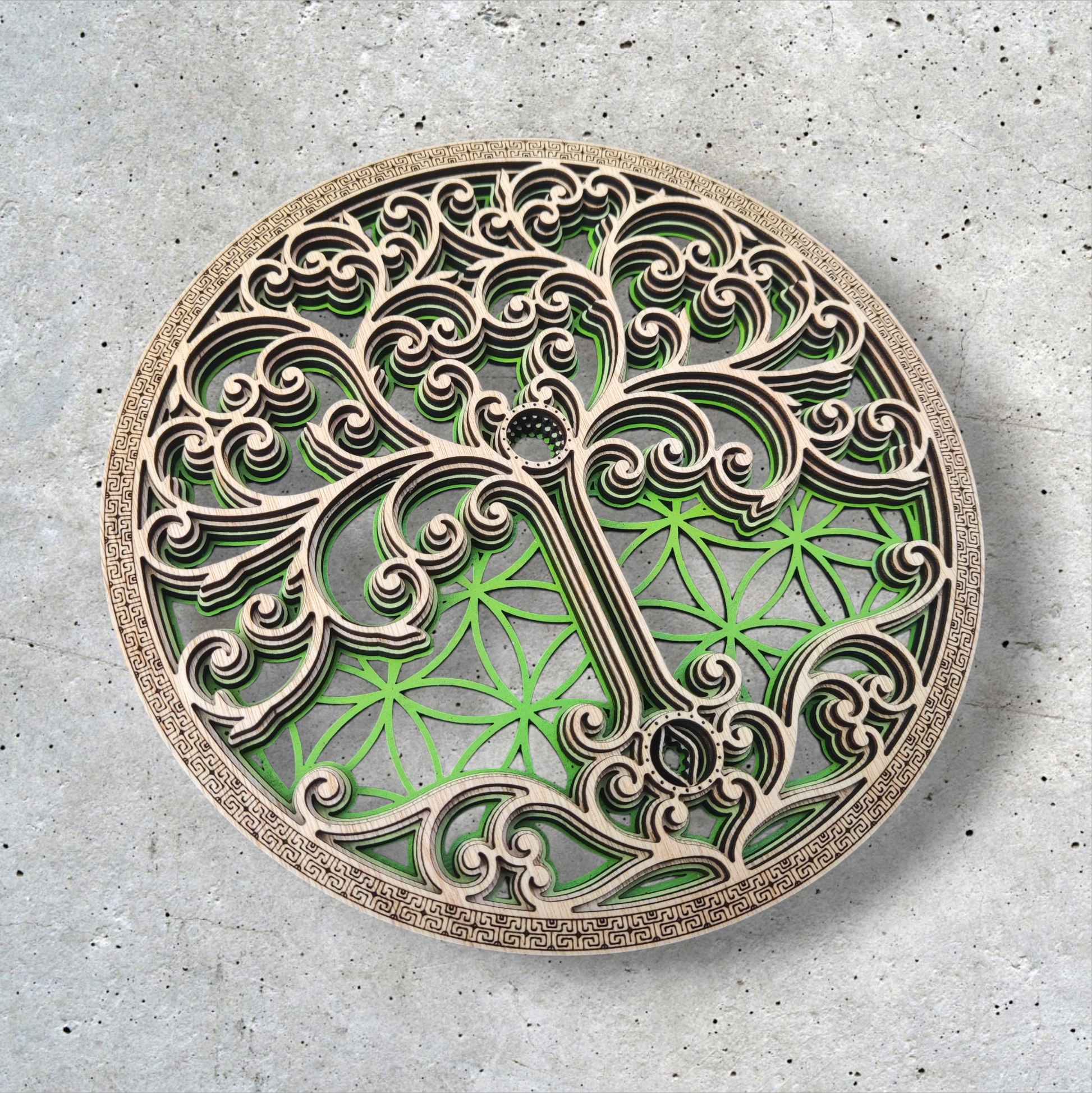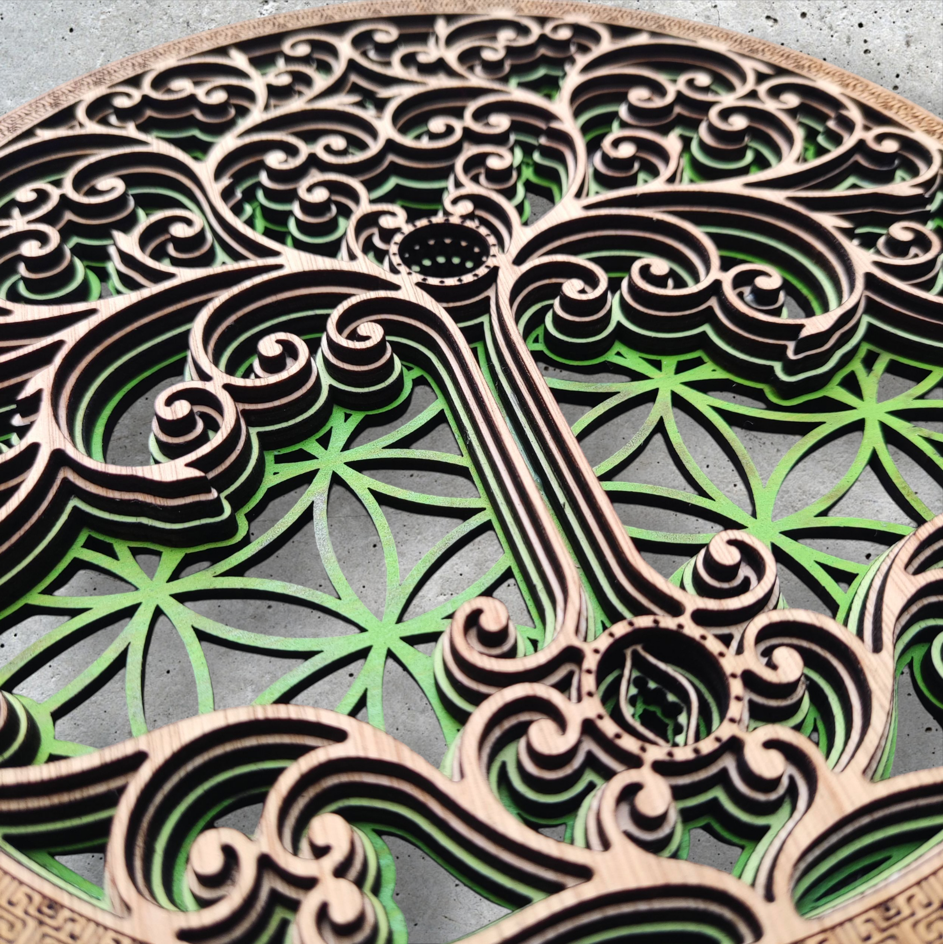 This mural merges two of the oldest and most powerful symbols in the universe: the Flower of Life and the Tree of Life .