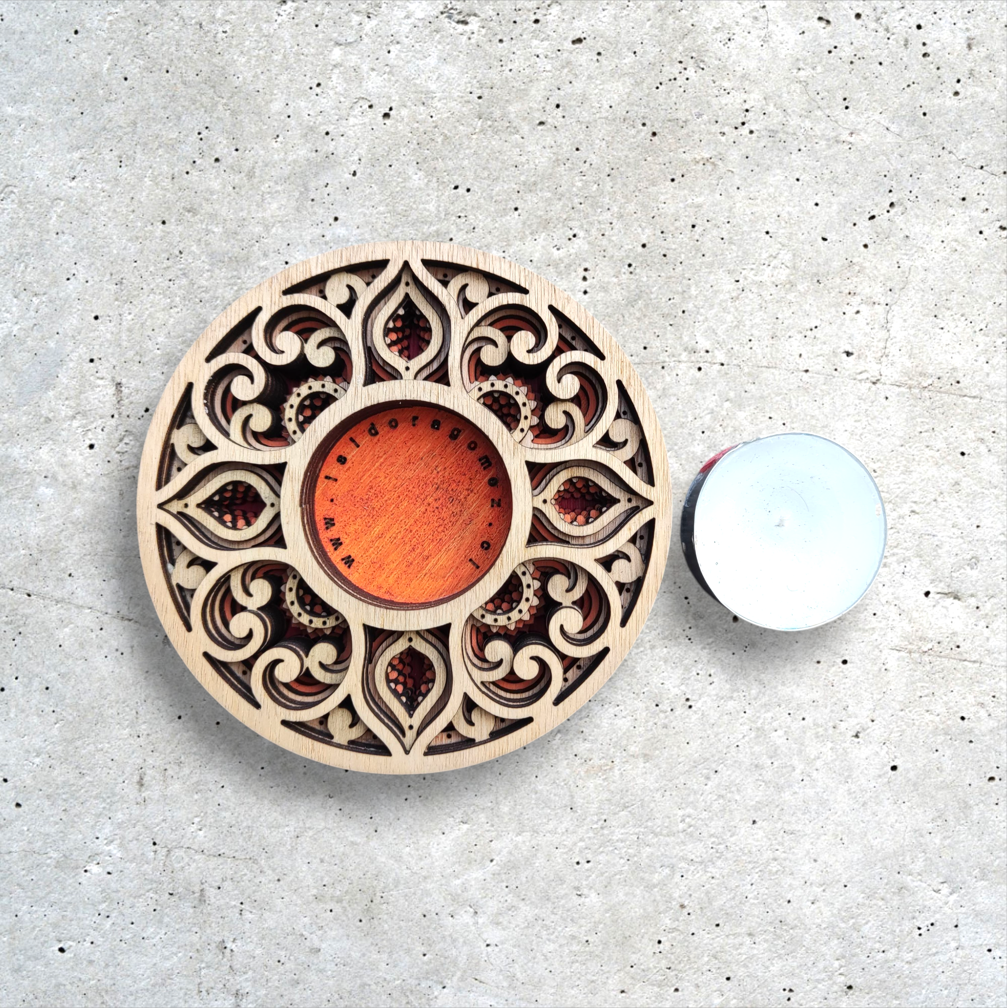 7 capas de madera. Incluye vela.