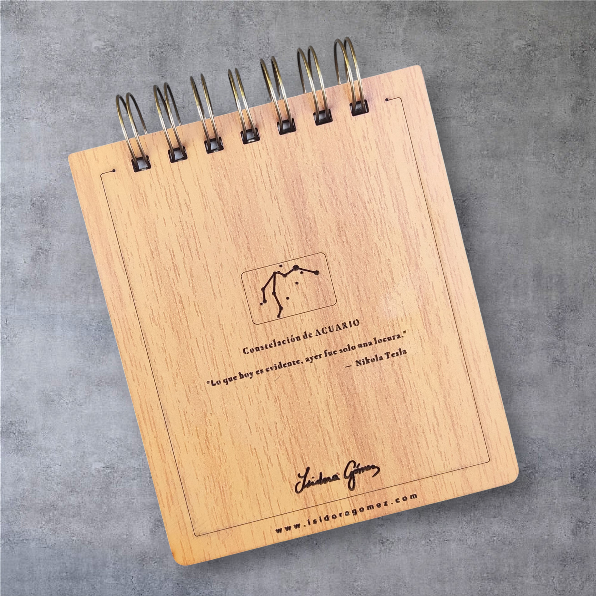 La Libreta Acuario celebra tu originalidad y pensamiento futurista con una portada inspirada en el signo y, en el reverso, la constelación de Acuario para acompañar cada idea disruptiva. Fabricada en papel ecológico de caña de azúcar, suave y de bajo impacto ambiental, es ideal para bocetos, notas creativas y planes que rompen moldes.