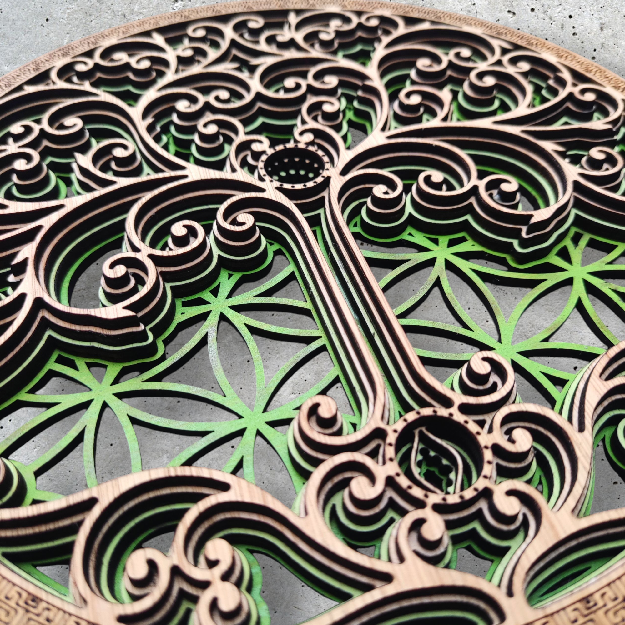 Este mural fusiona dos de los símbolos más antiguos y poderosos del universo: la Flor de la Vida y el Árbol de la Vida.