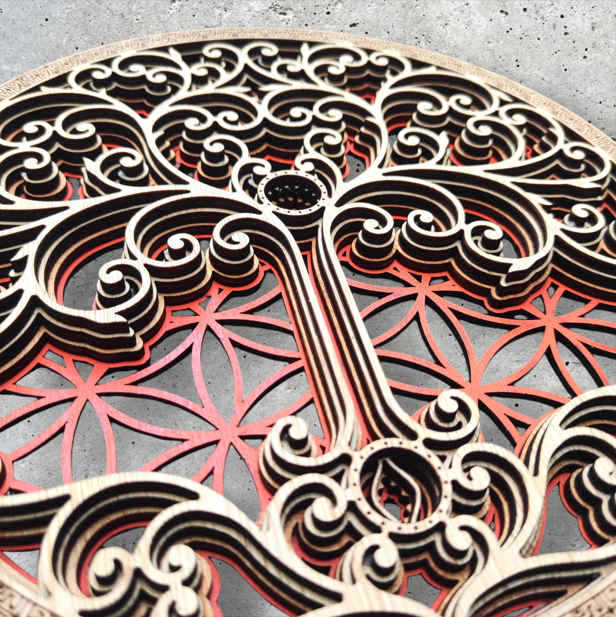 Este mural fusiona dos de los símbolos más antiguos y poderosos del universo: la Flor de la Vida y el Árbol de la Vida.